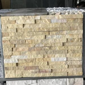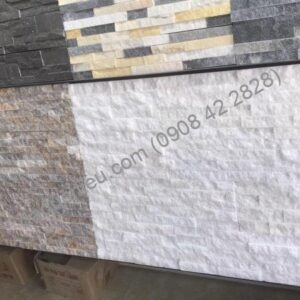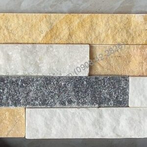 Đá trang trí ghép ghép nhiều màu là đá chẻ tự nhiên được đục cắt thành từng que nhỏ, ghép lại với nhau thành từng viên lớn theo quy cách 10×50 cm. Màu sắc đá đẹp tự nhiên, đơn giản và mix với nhau tạo nên một mảng tường đá thật bắt mắt.